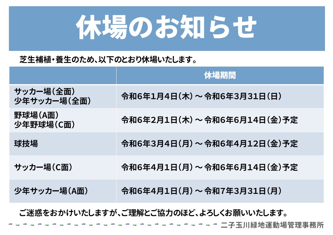 후타코 타마가와 녹지 운동장 잔디 보충 · 양생에 따른 휴장의 알림